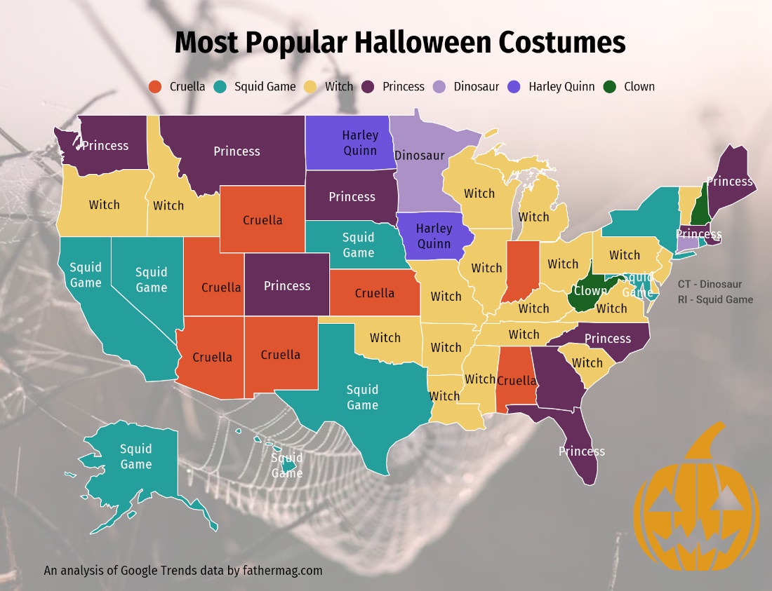 The Squid Game costume, based on the popular Netflix show, was reportedly the most popular across the U.S., drawing audiences from states with large populations like California, New York and Texas.