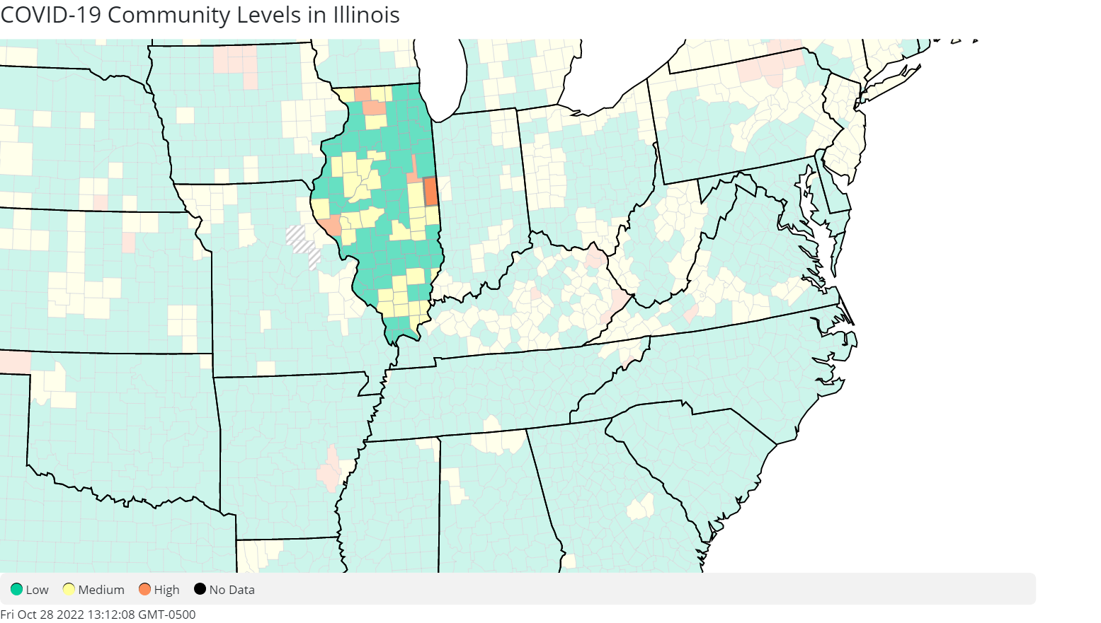 As of Friday, Stephenson County was experiencing 217.99 cases per 100,000 population, 18.1 COVID-19 admissions per 100,000 population and 4.4% of staffed inpatient beds in use by COVID-19 patients, the CDC stated.