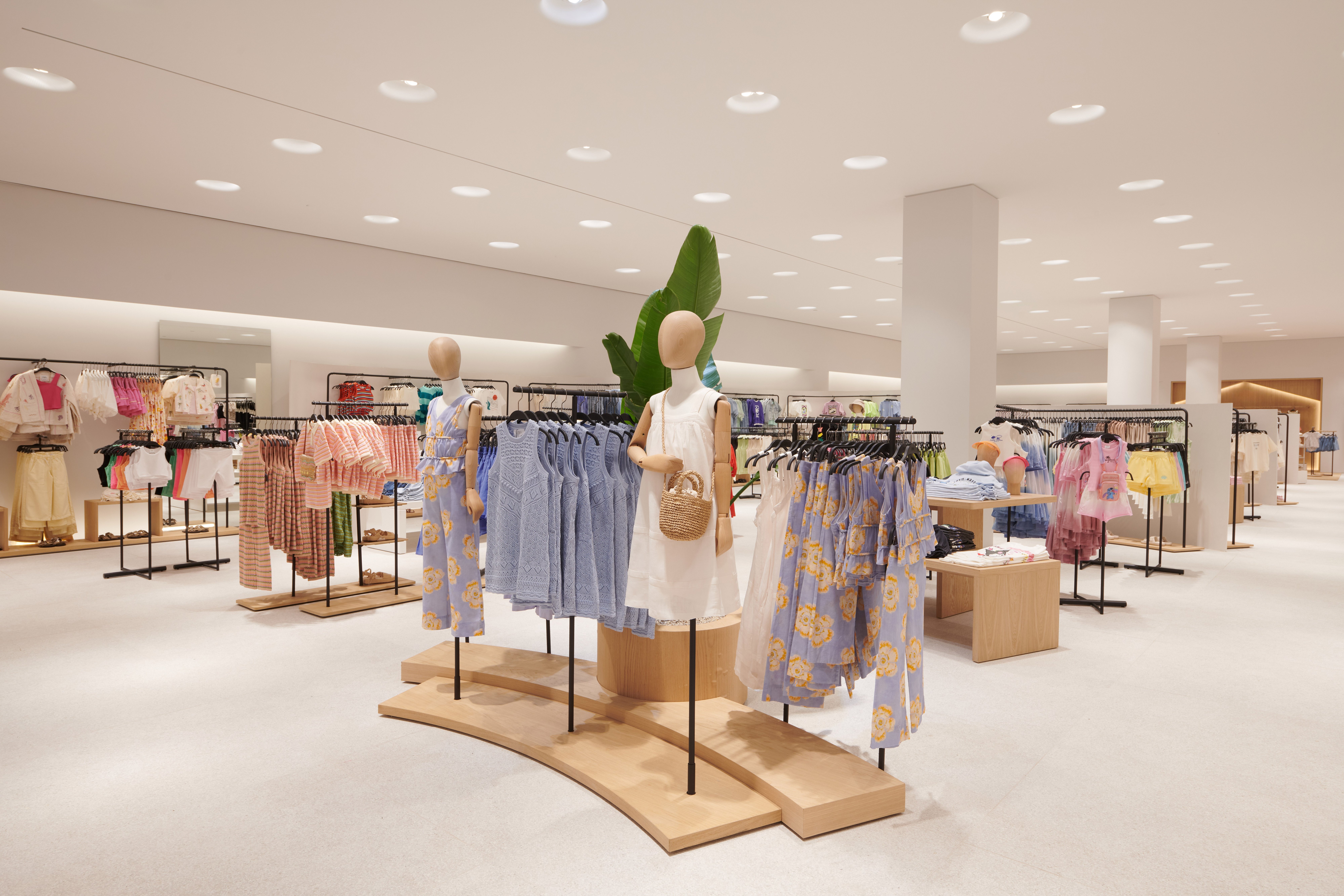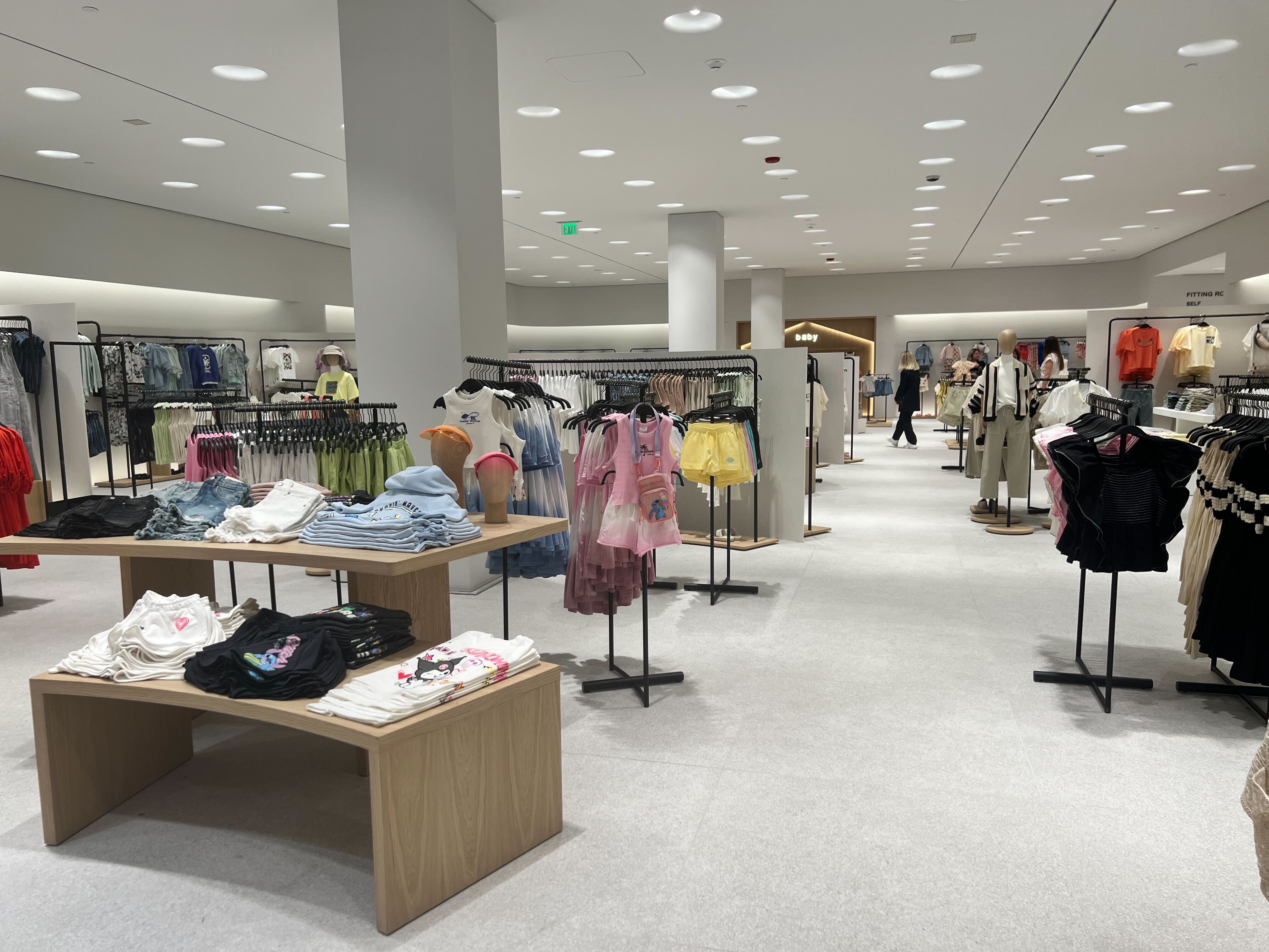 The fresh space, with floor-to-ceiling windows, white tiling and warm wooden accents, is more than double the space of the previous location, a spokesperson said, with larger women’s, kid’s and baby sections. It’s also meant to appear more elegant, with a bright white palate as opposed to the dark brown and black floors, walls and accents that the original store, designed 16 years ago, offered to customers.