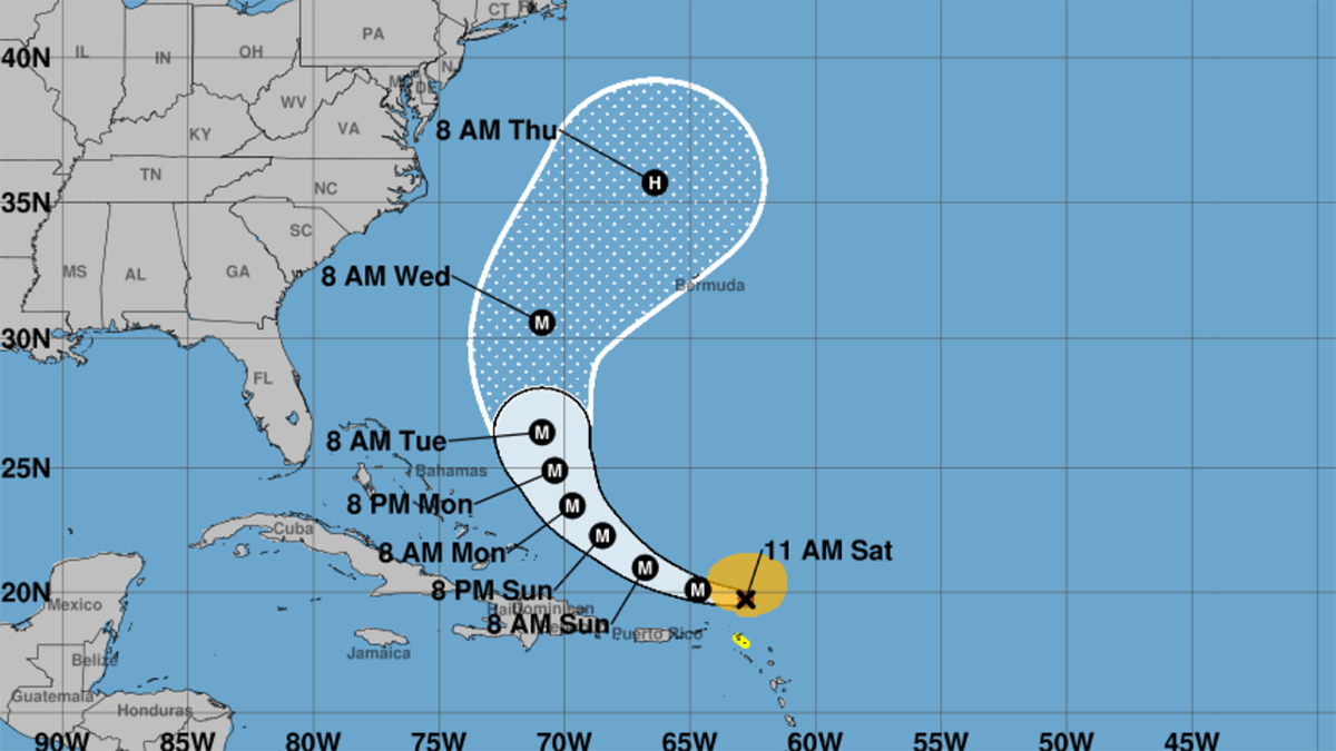 Tropical storm watches were in effect for St. Martin and St. Barthelemy, Sint Maarten and the Turks and Caicos, while outer rainbands were affecting the Northern Leeward Islands, the NHC said Saturday afternoon.