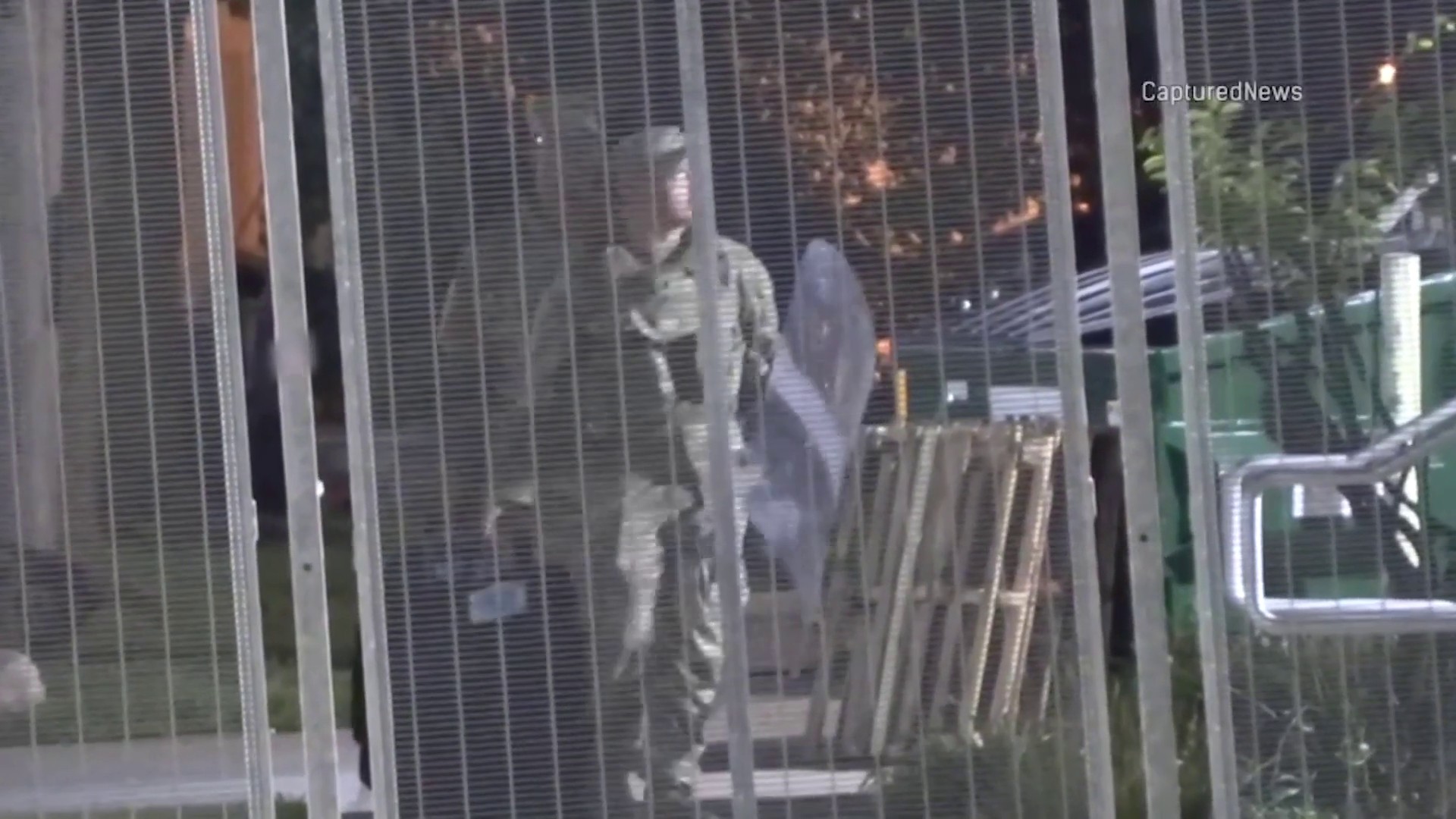 New video showed uniformed troops appearing to arrive at the Immigration Customs and Enforcement processing facility in suburban Broadview early Thursday morning, with soldiers seen behind a fenced area carrying shields, duffle bags and other equipment in and out of the building.