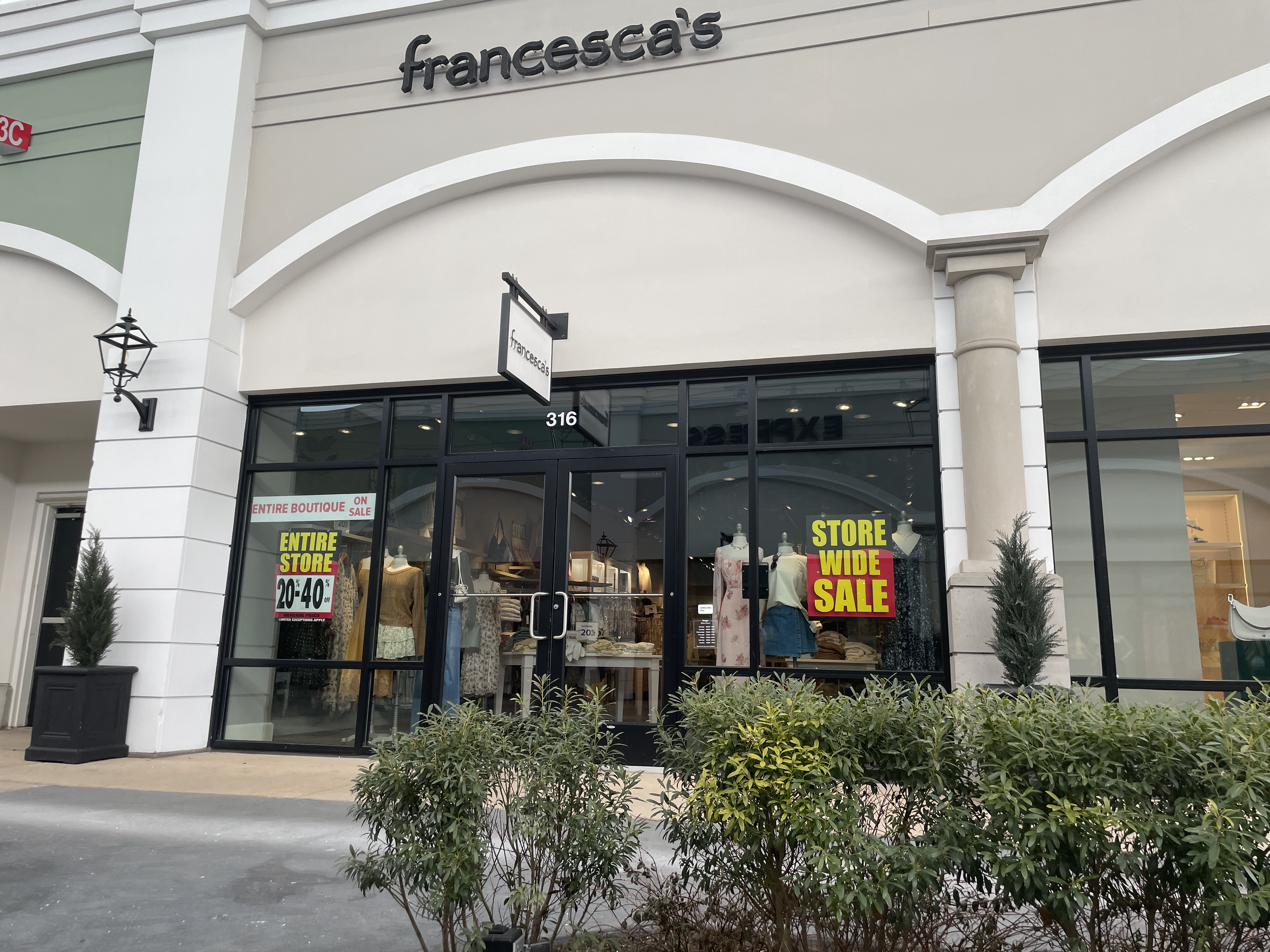 “Major discounts” will be offered at all Francesca’s boutiques and outlet stores across 45 states, the announcement said. Discounted items include sweaters, cardigans, blouses, skirts, loungewear, denim, dresses, rompers, jumpsuits, jewelry, gifts, accessories and more.