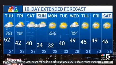 The highest storm chances come after 3 p.m. and into Thursday evening, Roman said. At that time, parts of the Chicago area along and south of I-80 and I-88 would be under a “marginal” risk of severe weather, which ranks as level one of five.