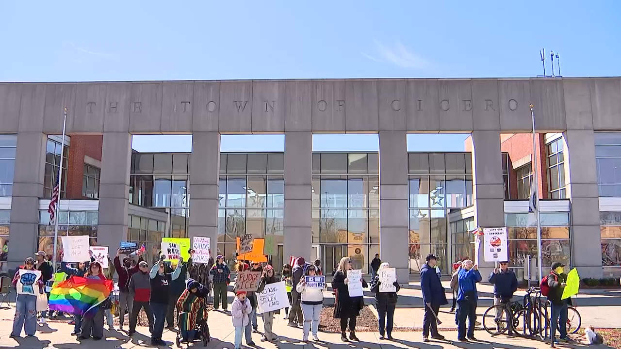 In Cicero, a majority Latino area heavily impacted by the Trump administrations immigration crackdown, protestors gathered for a “No Kings” event outside of the Cicero Town Hall, located at 4949 W. Cermak Rd.