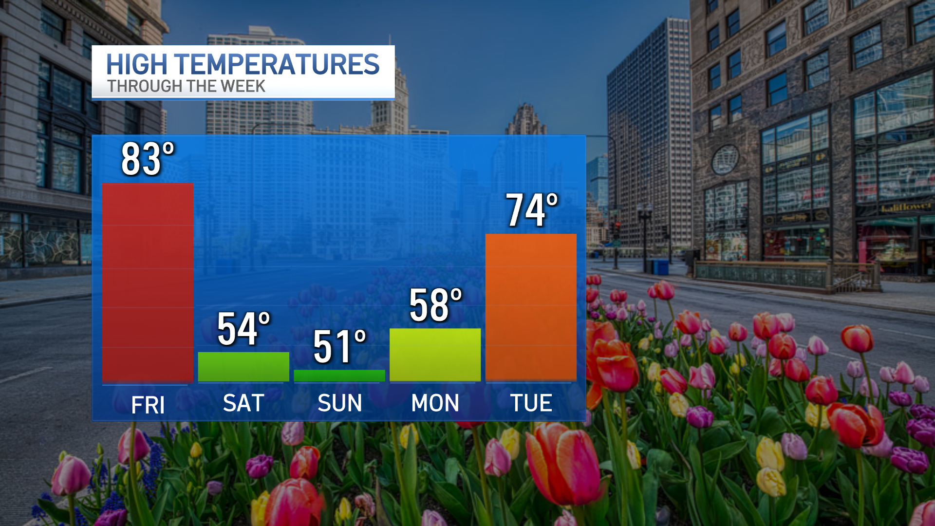 About 7 p.m. is when a line of storms will move in, Scott said, starting to the west. Showers and storms are expected to be over Chicago by about 9 p.m. or 10 p.m., then moving to the east into northwest Indiana.